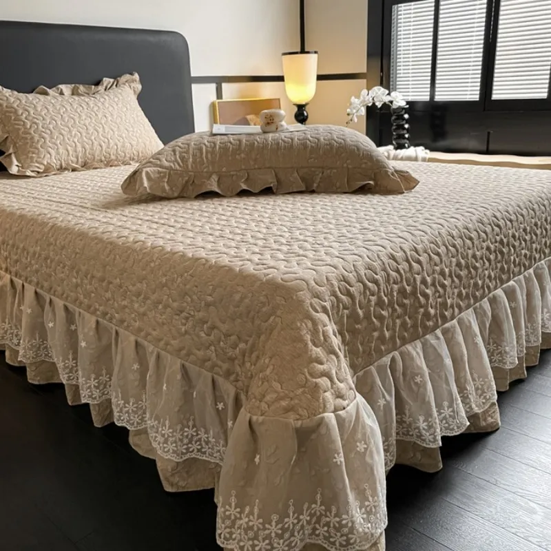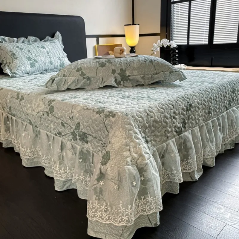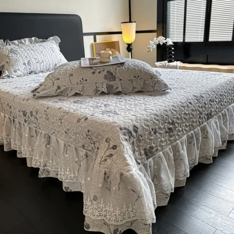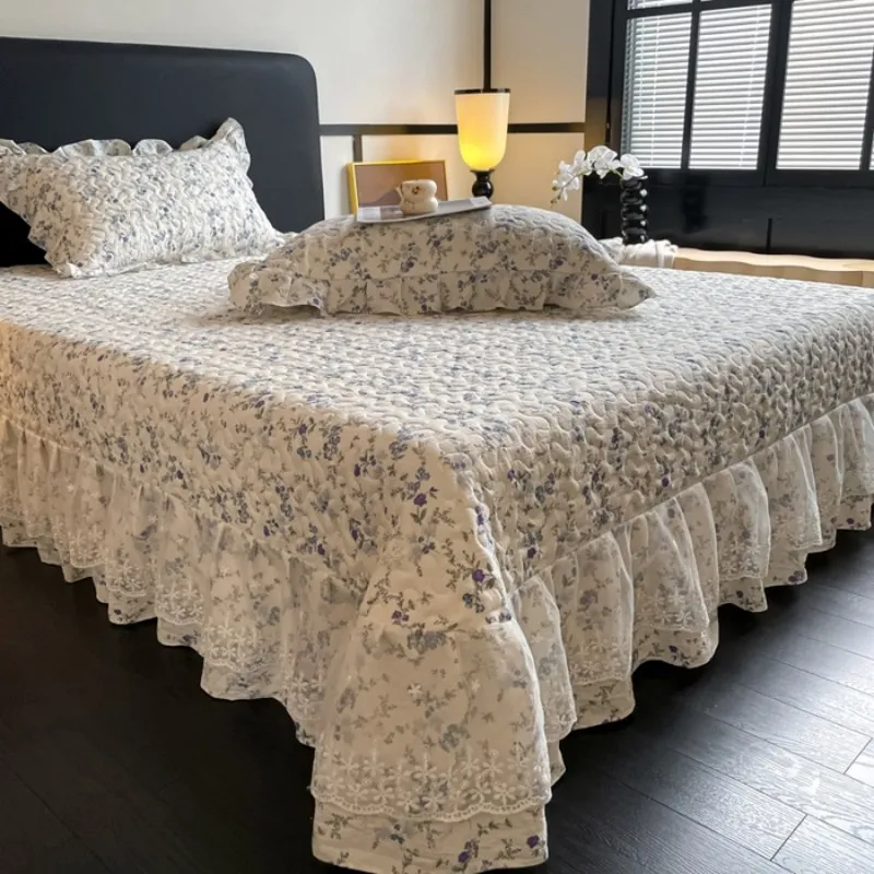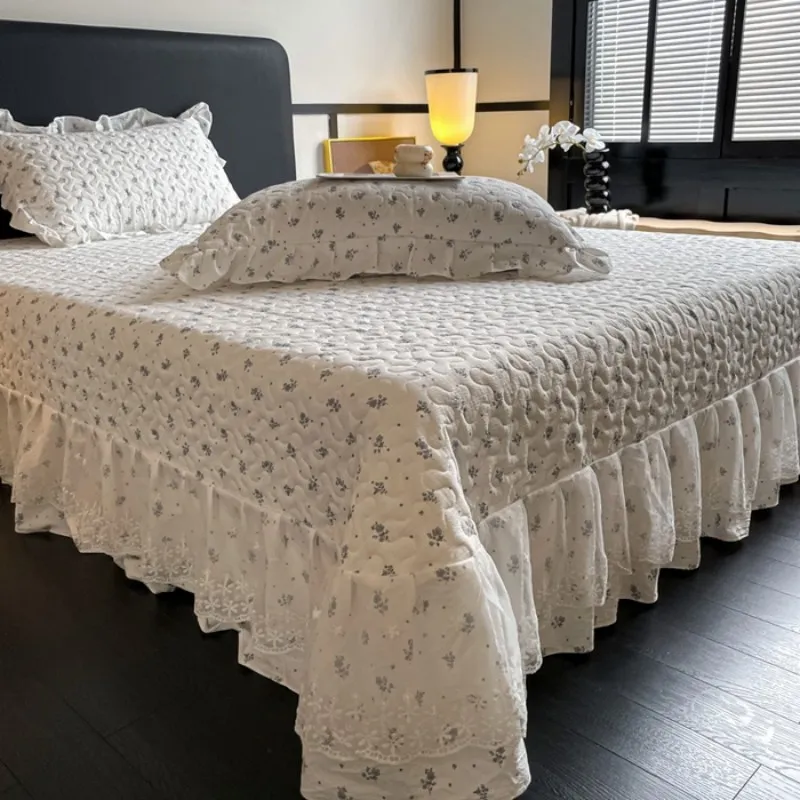Высококачественное французское кружево с оборкой + нежный мелкий цветочный принт; подчеркивает текстуру спальни и подходит для больших помещений. 4. Реактивное окрашивание; высокая стойкость цвета; сохраняет первоначальный вид после стирки; экологически чистый, безопасный и без запаха.