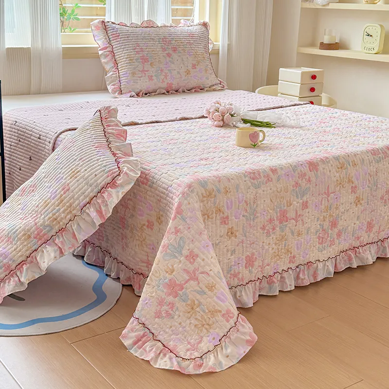 Новый комплект постельного белья из трех предметов с французским кружевом (2026 год) (стеганый хлопковый постельное белье, кружево в корейском стиле с оборками, мелкий цветочны